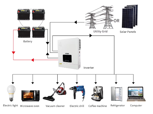 به طور کای باید بدانید که اینورتر چه کاربردی دارد اینورتر وسیله ایست که برق مستقیم را به برق متناوب تبدیل میکند برقی که پنل ها تولید میکنند و در باتری ها ذخیره میشود به صورت مستقیم یا DC است وظیفه اینورتر این است که این برق DC را به AC تبدیل کند چرا که مصرف کننده های منزل ما نیاز به برق AC دارند.