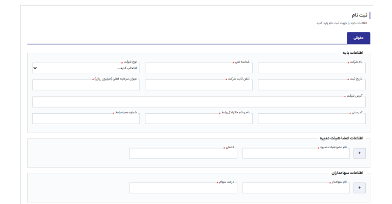 اطلاعات مربوط به شرکت را در این بخش وارد کنید:
